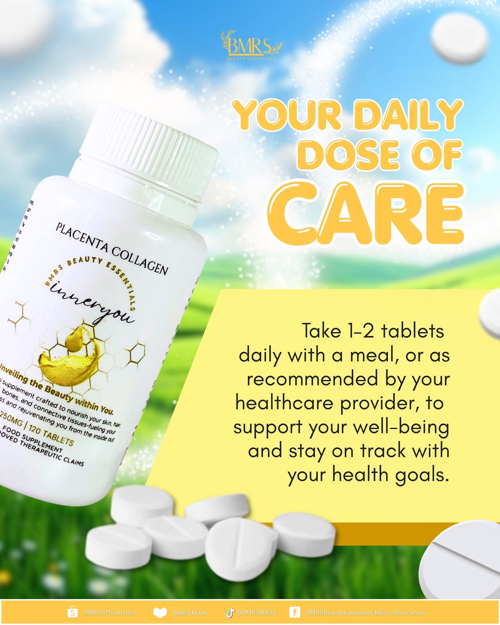 BMRS Beauty Essentials Inner You Placenta Collagen Food Supplement 250mg (120 Tablets)