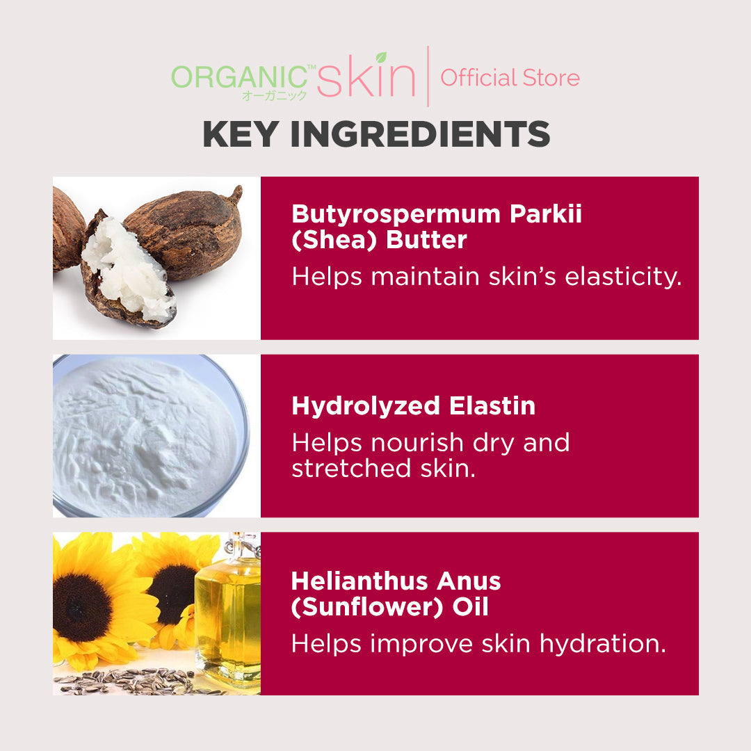 There are many factors that affect the elasticity of the skin. Pregnancy, age-ing, dry/unmoisturized skin, and weight gain. These factors targets the belly. The belly, if not moisturized as it stretches during pregnancy and weight gain will definitely start the appearance of awful stretch marks. Prevent and reduce stretch marks on your belly by improving the elasticity of your skin with the use of Organic Skin Japan’s Belly Butter. Feel the comfort in your belly as it moisturize, whitens, and visibly reduce the appearance of stretch marks.